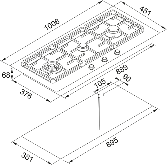 100.5cm Black Glass & Stainless Steel 3 Burner Gas Cooktop NG