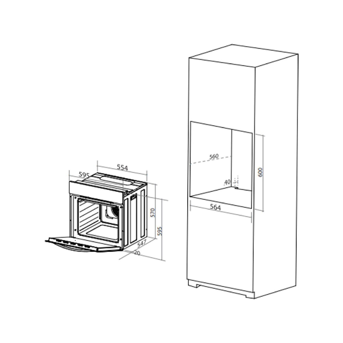 595mm Wide x 595mm High x 567mm Deep