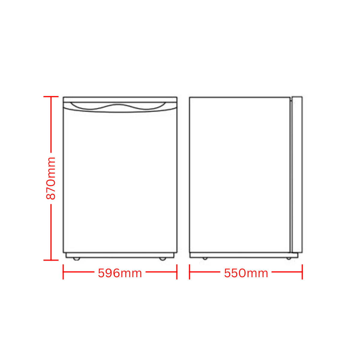 596mm Wide x 818mm – 870mm High x 550mm Deep