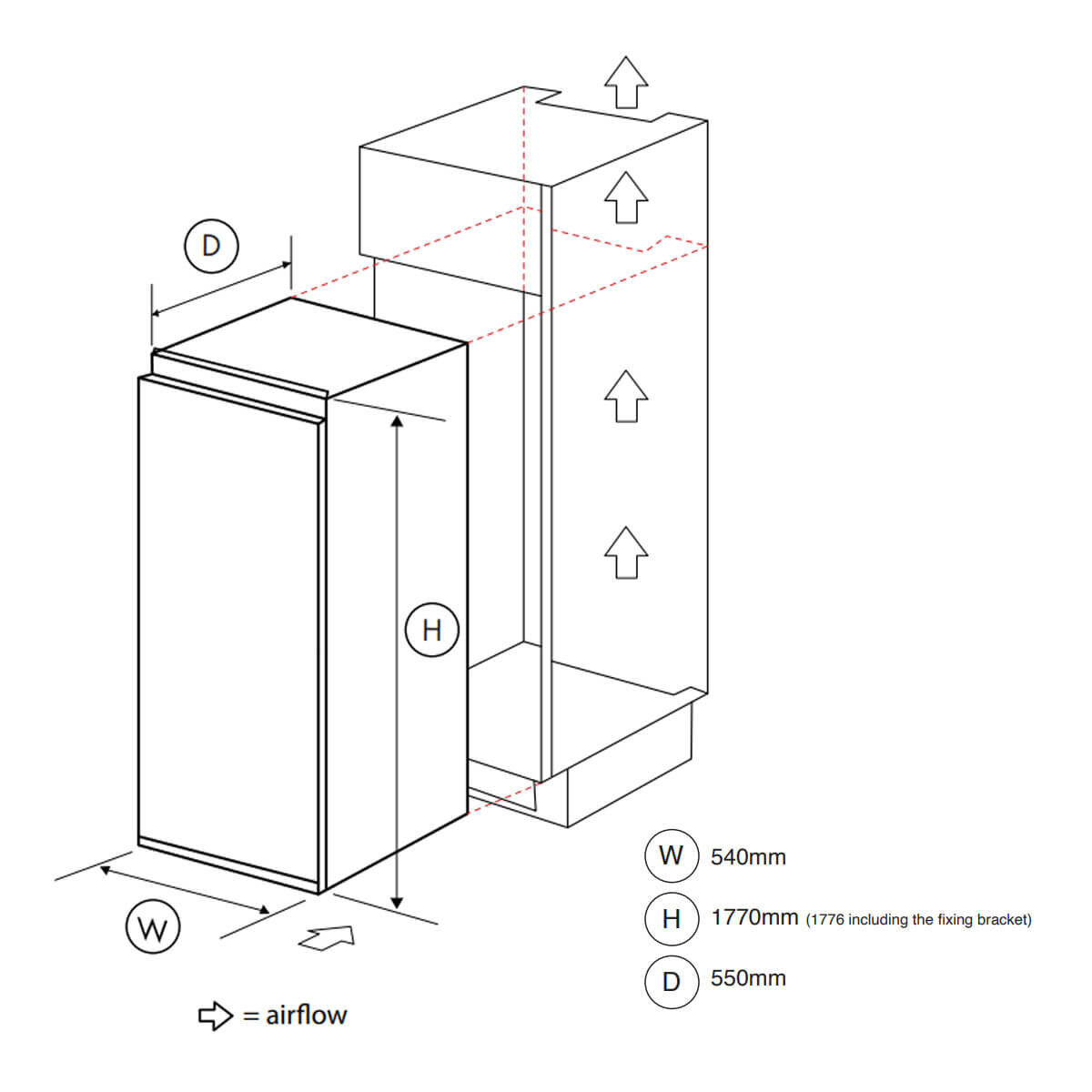 540mm Wide x 1770mm High x 550mm Deep