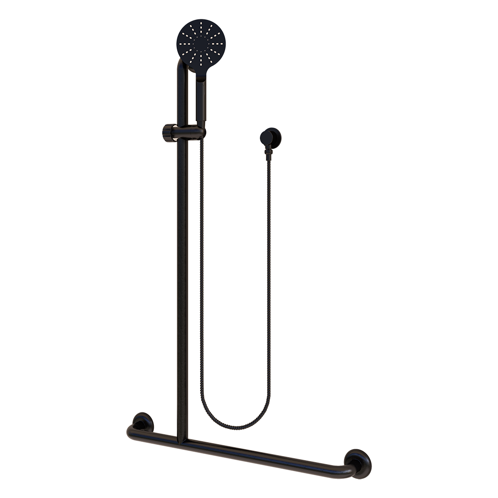 - #304 Grade Stainless Steel Grab Rail with a Designer Black Shower Kit