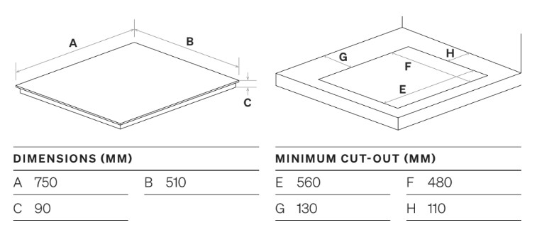 750mm W x 510mm D x 90mm H