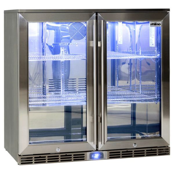 Rhino GSP2H-SS 210L Stainless Steel Alfresco Glass Twin Door Bar Fridge