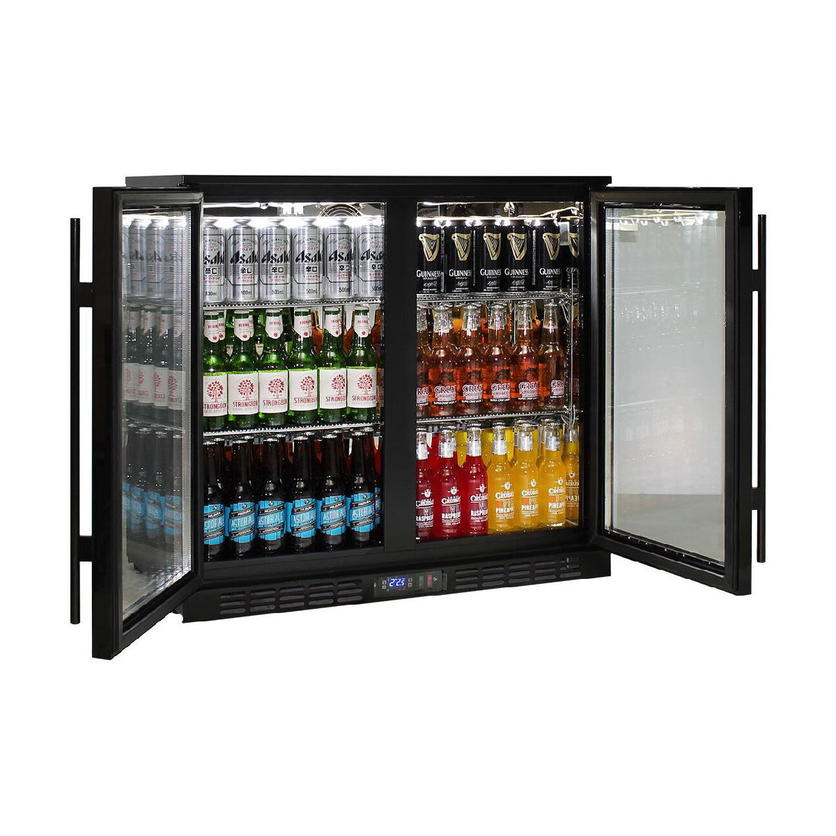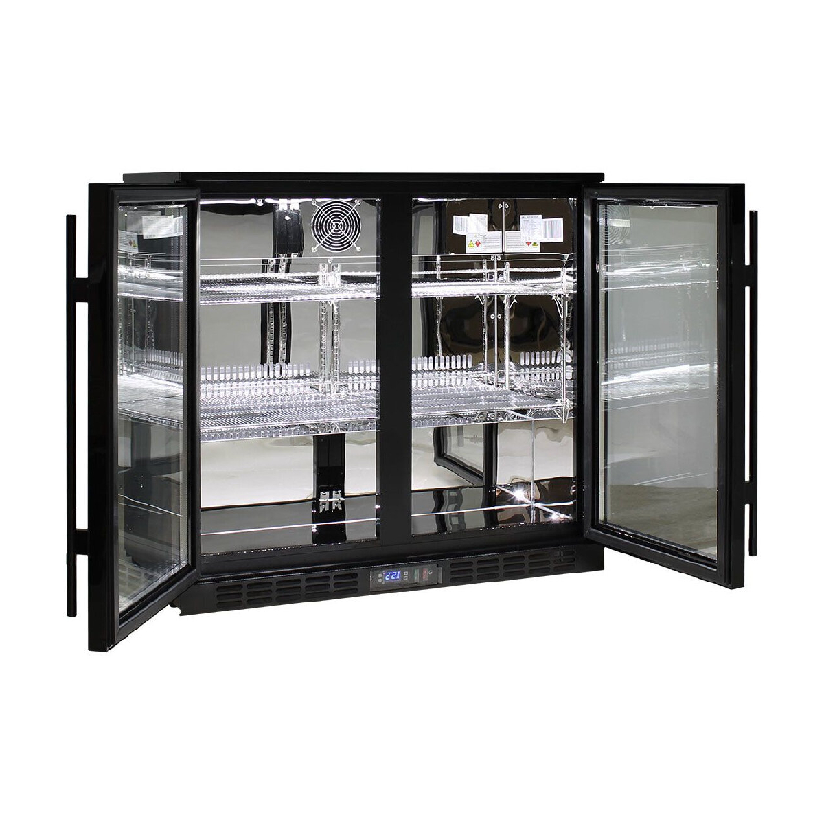 Double Door Commercial Under Bench Quiet Running Bar Fridge. Units encompass the best brand name parts available in the world, designed by the best engineers and built by a quality long term manufacturer, to bring a reliable product to the market, quiet fans are a bonus for those indoor applications. Polished stainless steel inner, LG compressor, LOW E glass, lock and German EBM fans make unit robust for tough conditions.