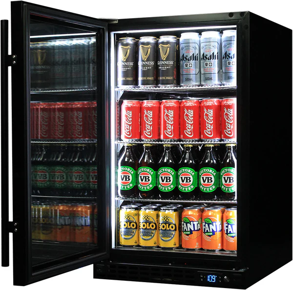 Schmick Quiet Running Front Venting Under Bench Black Glass Door Bar Fridge Heated Glass – Model SK126L-B-HD