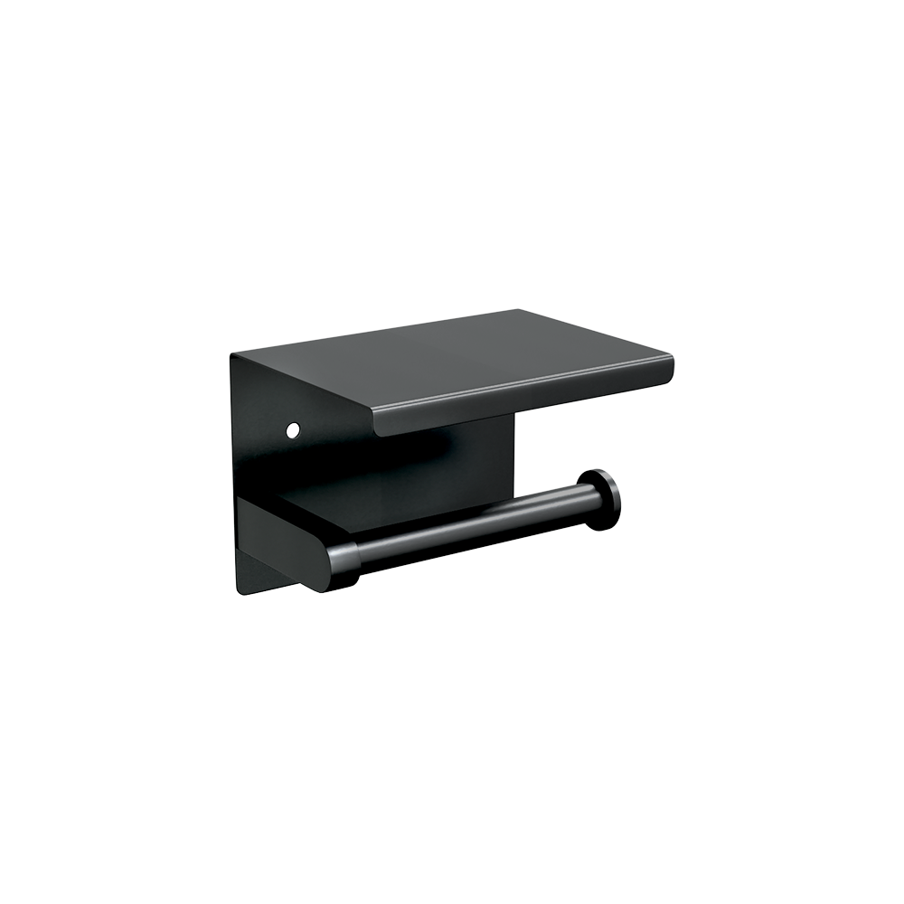 Metlam ML268_TRH_DESIGNER Single Toilet Roll Holder with Shelf Top in Designer Black