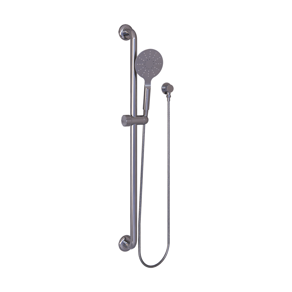 - #304 Grade Stainless Steel Grab Rail with a Chrome/Grey Shower Kit